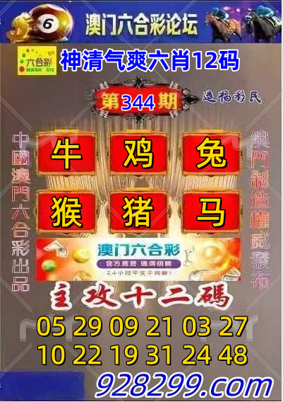 344期:【神清气爽】🌭六肖十二码🌭『牛鸡猴猪马』开:兔27对